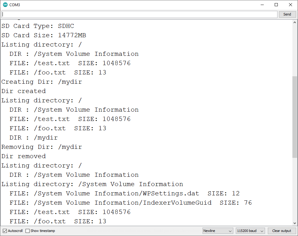 Las siguientes líneas imprimen el tipo de tarjeta microSD en el Monitor Serial.