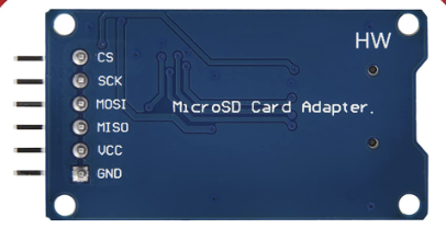 Para este proyecto se ha probado el lector de sd de AZDelivery el cual nos proporciona una expansión fácil y económica del espacio de almacenamiento mediante la ranura SD. La comunicación es muy fácil con el microcontrolador a través del protocolo SPI (como vamos a ver ) y soporta tarjetas Micro SD (2G), tarjetas Micro SDHC (32G) (tarjeta de alta velocidad). Además el módulo lee todos los datos contenidos en la tarjeta SD y se puede conectar fácilmente a varios tipos de microcontroladores ( además si lo compramos a este fabricante incluye un E-Book que proporciona información útil sobre cómo comenzar su proyecto, ayuda con una configuración rápida y ahorra tiempo en el proceso de configuración proporcionándonos una serie de ejemplos de aplicación, guías de instalación completas y bibliotecas, etc.).