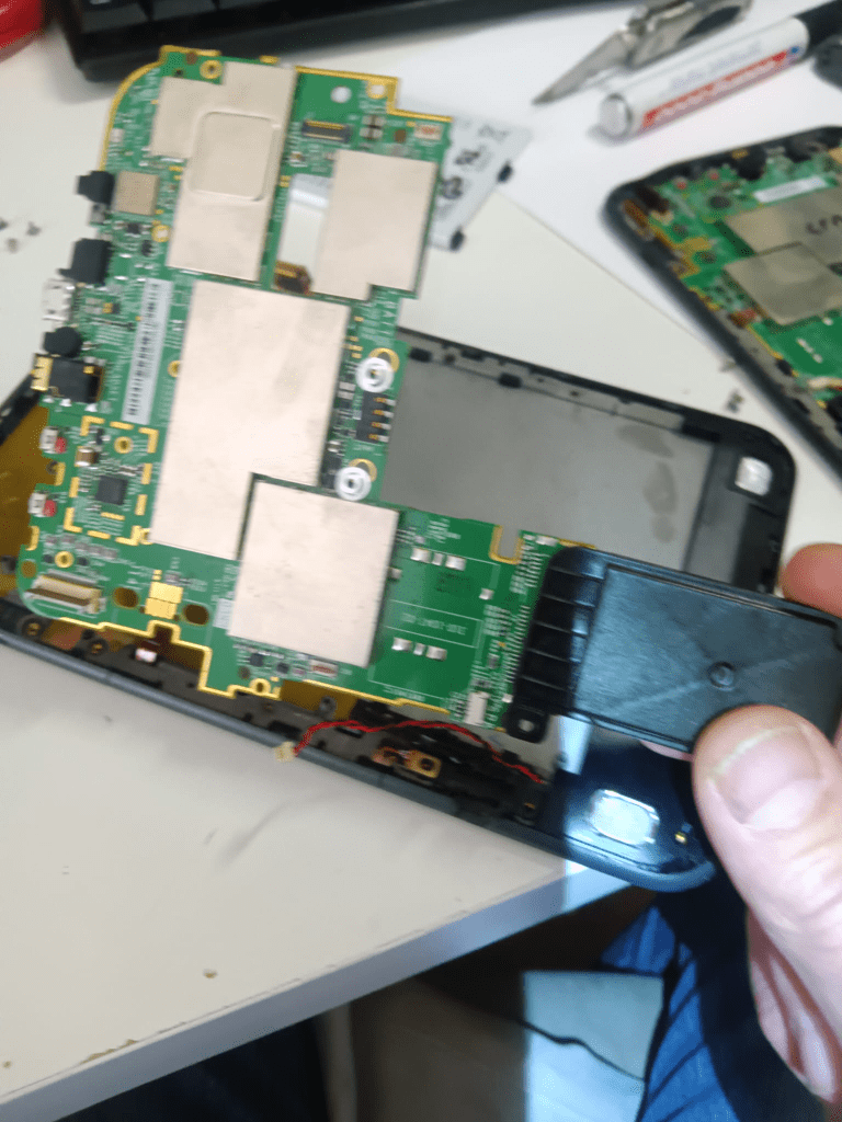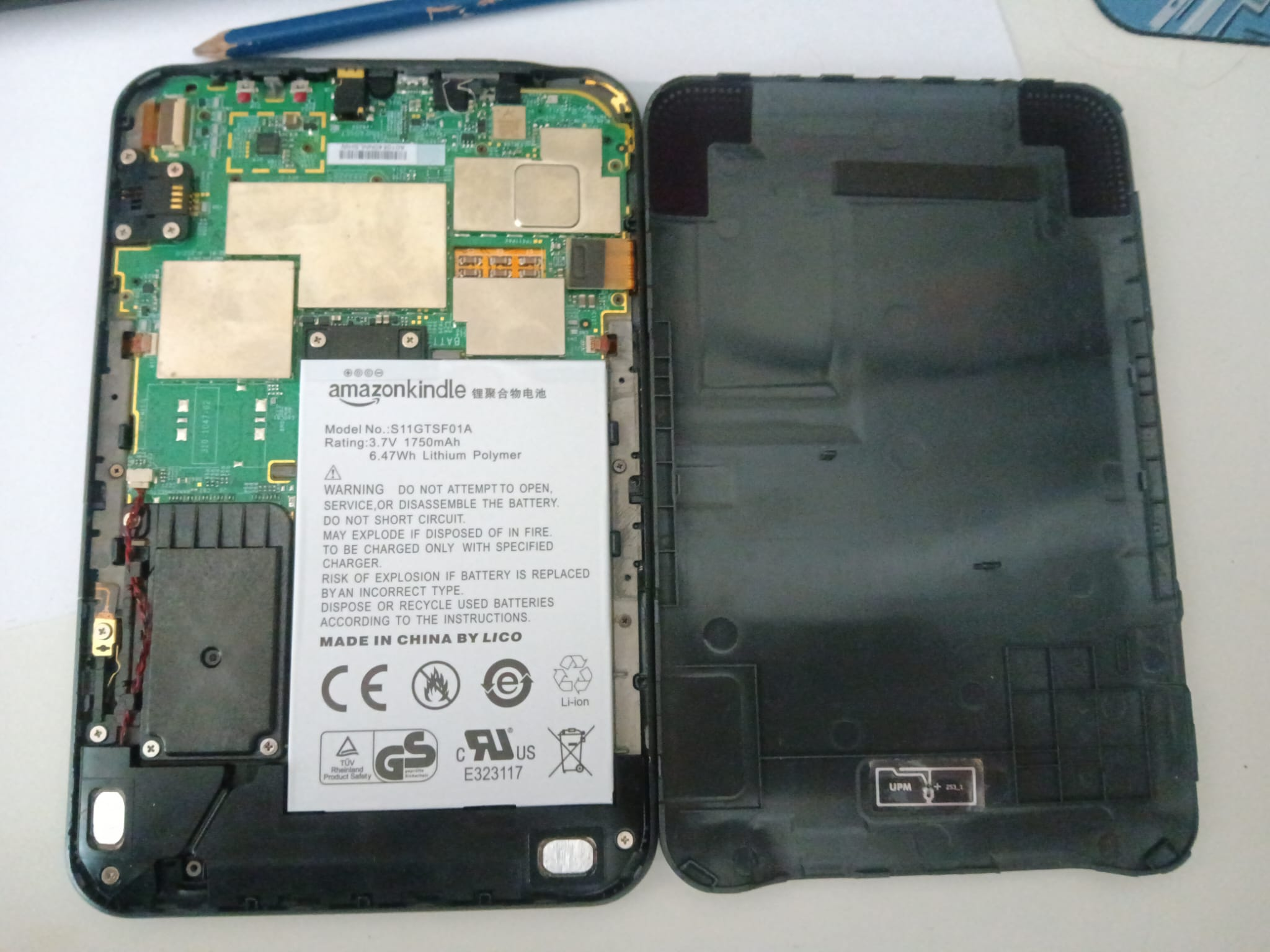 Para una reparación general pues lo mas fácil es contar con otro kindle de la misma versión averiada. En este ejemplo usaremos un kindle con la pantalla rota pero con la placa madre operativa para extraer esta y colocarla en otro con la pantalla ok pero con la placa madre rota que no arranca.