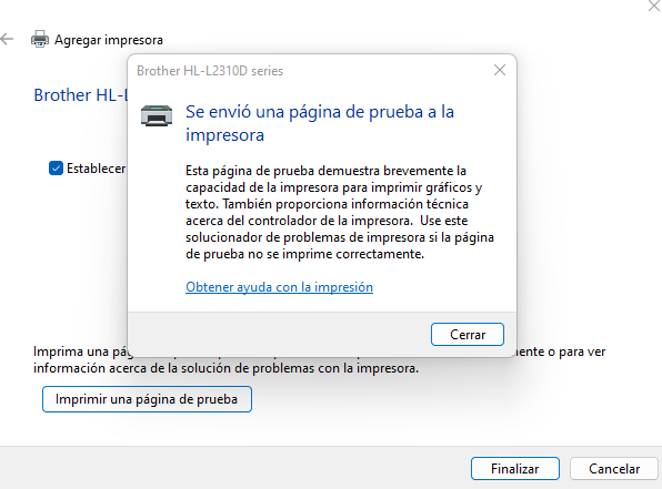 En el último paso, tendremos la opción de imprimir una página de prueba. Es recomendable llevar a cabo el proceso, ya que así podremos saber si la configuración se ha llevado a cabo correctamente.