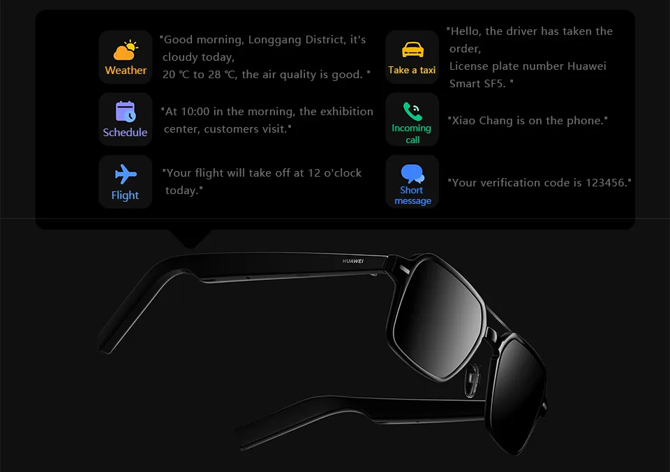 Con una visión más parecida a la de Amazon, pero delegando las funciones “inteligentes” al smartphone tenemos las gafas , Huawei con sus Eyewear  disponibles por unos 239€ en portales asiáticos