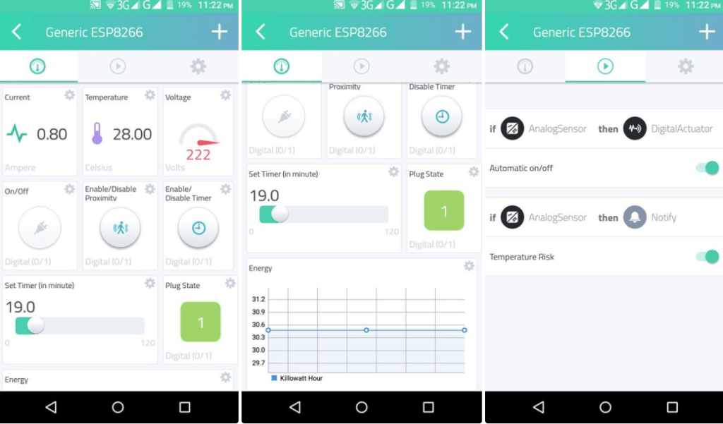 - Condiciones – pruebas opcionales que deben cumplirse para que pueda ejecutarse una acción pueda ejecutarse. Por ejemplo, si hay alguien en casa.