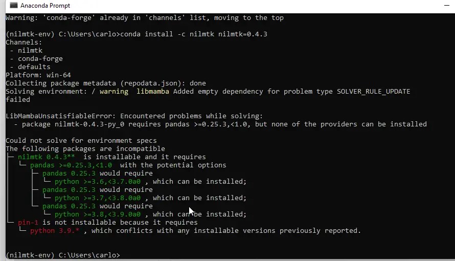 Como puede experimentar algunos problemas posteriores a la instalación con NILMTK y Matplotlib., para solucionarlos, aplique el comando: