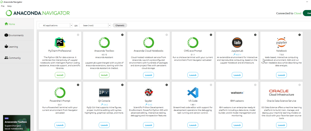 Ingresando a Anaconda Navigator MENU PRINCIPAL