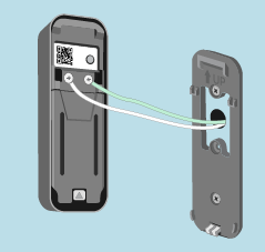 - Conecte el cable de timbre de 12/24V de a cada tornillo de la placa posterior. Cualquier cable se puede conectar a cualquiera de los postes. En el paquete del timbre se incluyen dos tornillos adicionales .Cuidado si su timbre tradicional es de 220V y no ha realizado el cambio de la instalación a 12 o 24 V porque entonces no debe conectarlo al blink ya que corre el riesgo de quemarlo.