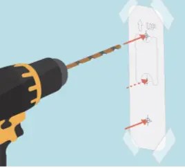 - Utilice la plantilla incluida para mostrar dónde se deben perforar los orificios de montaje. Pegue la plantilla con cinta adhesiva en su lugar, aproximadamente a 40 a 48 pulgadas (102 cm a 122 cm) del suelo.