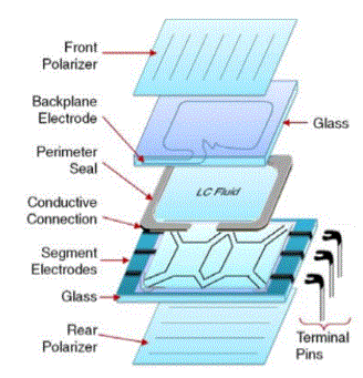 Antes de ver como intentar solucionar el problema debemos entender el funcionamiento interno , para lo cual no hay nada mejor que destacar las partes de las que se compone un display LCD: