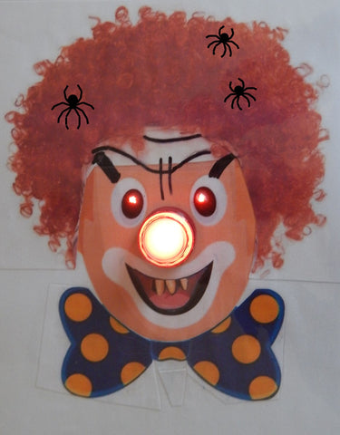 El código controla un rostro de payaso con LEDs RGB como ojos y un botón grande con un LED como nariz. El comportamiento es el siguiente: