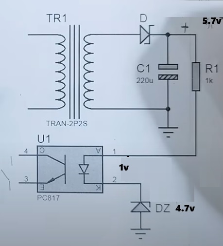 El circuito de regulación inicia con un voltaje bajo, por ejemplo, 1V, y aumenta progresivamente hasta que el optoacoplador y el diodo Zener entran en acción. Por ejemplo, si utilizamos un diodo Zener de 4.7V y el optoacoplador requiere 1V, el sistema se estabiliza cuando el voltaje supera los 5.7V. En este punto, el transistor del circuito de control recibe una señal que detiene el incremento de voltaje.