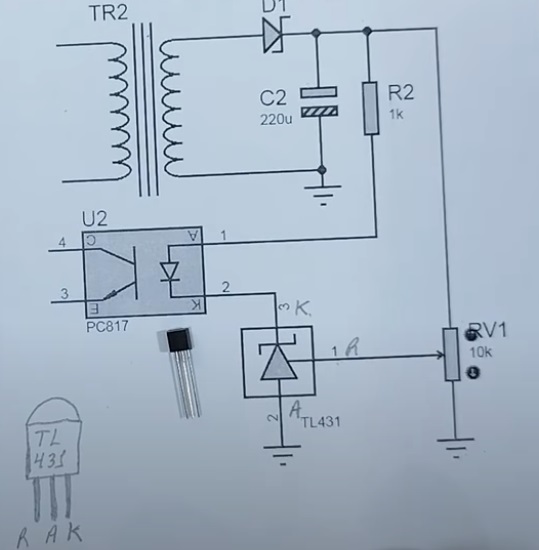 Implementando un Voltaje Ajustable Si queremos un voltaje variable, utilizaremos un TL431, un diodo Zener programable de tres terminales (referencia, ánodo y cátodo):