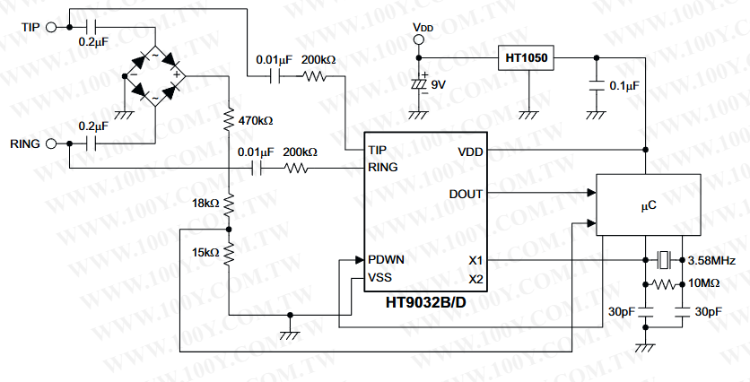 - U1 : HT9032D (DIP-8)