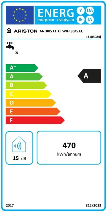 Sin embargo, aparece un modelo que rompe la tendencia: el Ariston Andris Elite WiFi 30. Este termo es clase A, consume solo 470 kWh al año y cuesta alrededor de 198,55 euros, un precio muy competitivo para su eficiencia. Gracias a su bajo consumo, el ahorro frente a un termo clase C ronda los 11–12 euros al año, lo que permite amortizar la diferencia de precio en unos cuatro años. Además, incorpora funciones inteligentes como control por WiFi, programación horaria y un aislamiento mejorado que reduce aún más las pérdidas térmicas.