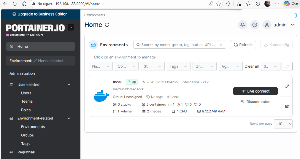 - Portainer puede bloquearse en el primer acceso (reinicio simple lo soluciona).