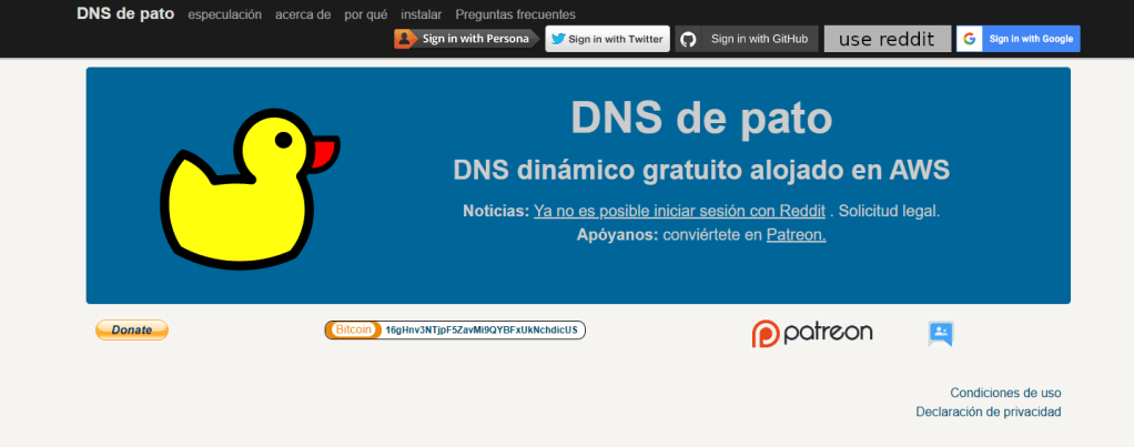 - Ve a duckdns.org, loguea con Google/GitHub.
