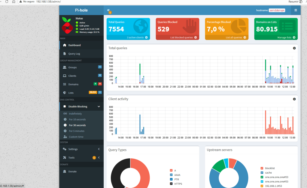 El resultado final es un sistema silencioso, estable, extremadamente útil y además con un consumo ínfimo de energia de sólo 10mA. La Raspberry Pi 3 apenas consume energía, puede estar encendida permanentemente y actúa como núcleo de tu privacidad digital. No dependes de terceros, no pagas cuotas y tienes control total sobre tu red. Una vez que lo montas y ves las estadísticas de miles de dominios bloqueados en Pi-hole, entiendes rápidamente por qué merece la pena dedicarle una tarde a configurarlo.
