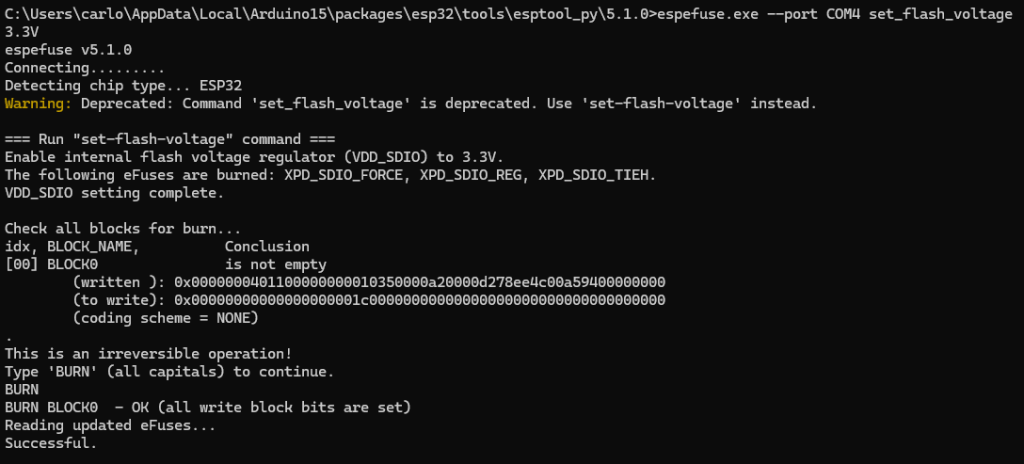 espefuse.exe --port COM4 set_flash_voltage 3.3V