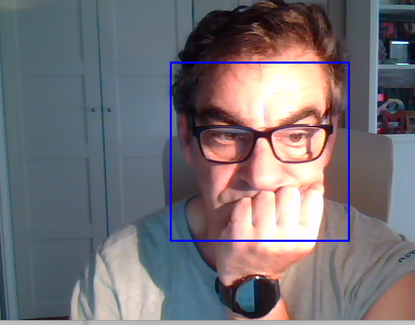 import cv2face_cascade = cv2.CascadeClassifier(cv2.data.haarcascades + 'haarcascade_frontalface_default.xml')cap = cv2.VideoCapture(0)while True: ret, frame = cap.read() if not ret: break gray = cv2.cvtColor(frame, cv2.COLOR_BGR2GRAY) faces = face_cascade.detectMultiScale(gray, 1.3, 5) for (x, y, w, h) in faces: cv2.rectangle(frame, (x, y), (x + w, y + h), (255, 0, 0), 2) cv2.imshow("Deteccion facial", frame) if cv2.waitKey(1) & 0xFF == ord('q'): breakcap.release()cv2.destroyAllWindows()