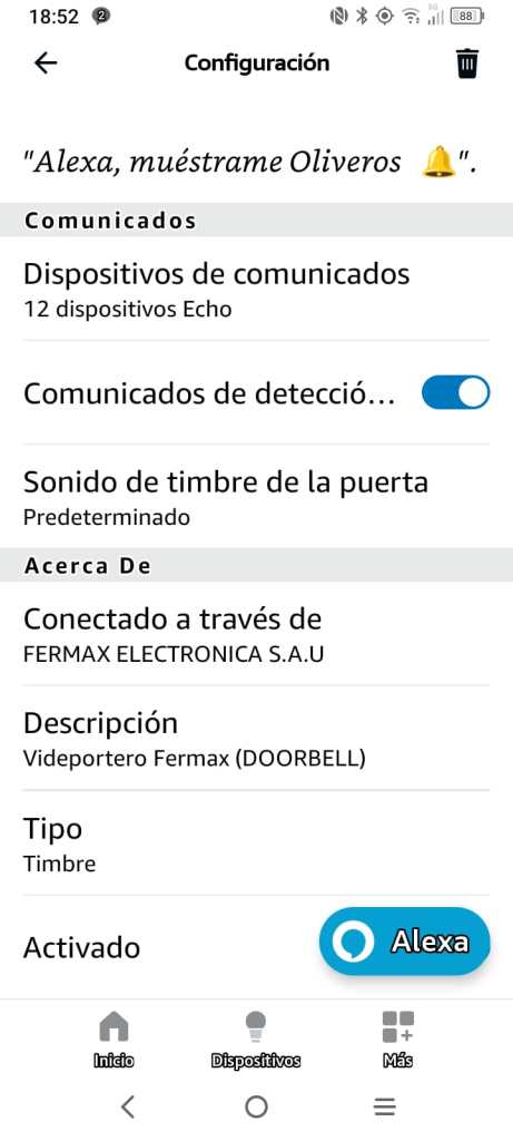 Si esta cansado de siempre perder llamadas de entregas de paquetes por el mero hecho de estar en una habitación y no escuchar el videoportero automático Fermax wifi, con esta skill se ha acabado el problema, porque cuando nos llamen sonará en todos los dispositivos Echo o en la app Alexa si la tenemos activa. Como vemos es realmente interesante la integración de Fermax y Alexa, así que en ese sentido desde este blog creemos que es una muy buena noticia .