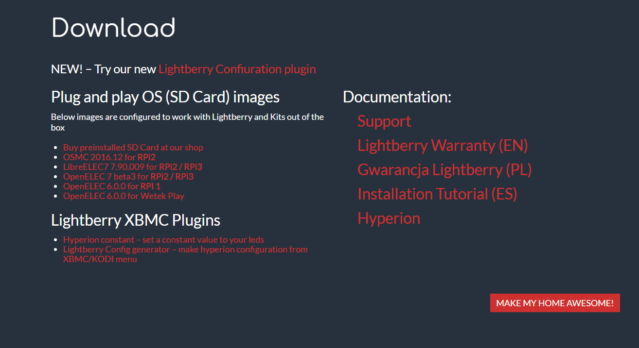 - Tipo de tira de leds: en nuestro casi podemos elegir Lightberry HD for Rasperry pi (ws2801)