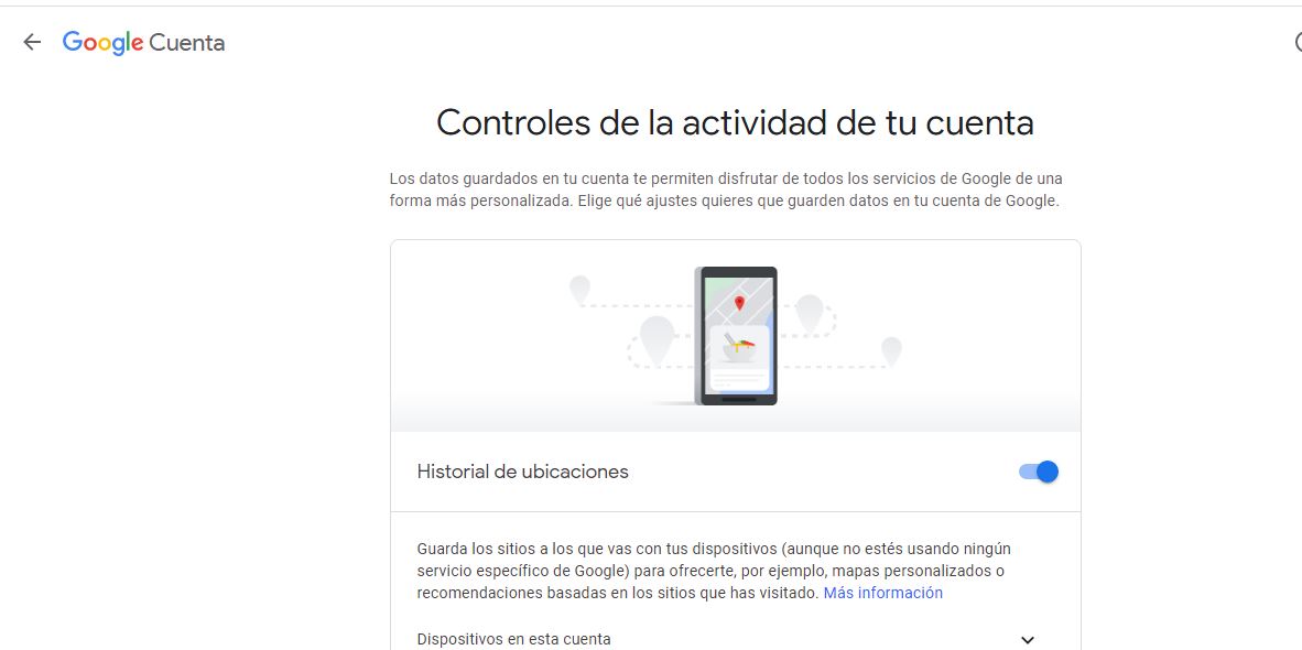 - En la parte inferior central aparecer un botón de «gestionar el historial de ubicaciones»