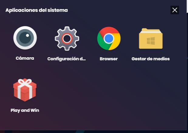 Originalmente una vez instalado la aplicación no veremos casi nada a excepción del navegador ,el gestor de medios ,el acceso a la parte de Configuración , el acceso de la cámara (del pc) y poco más.