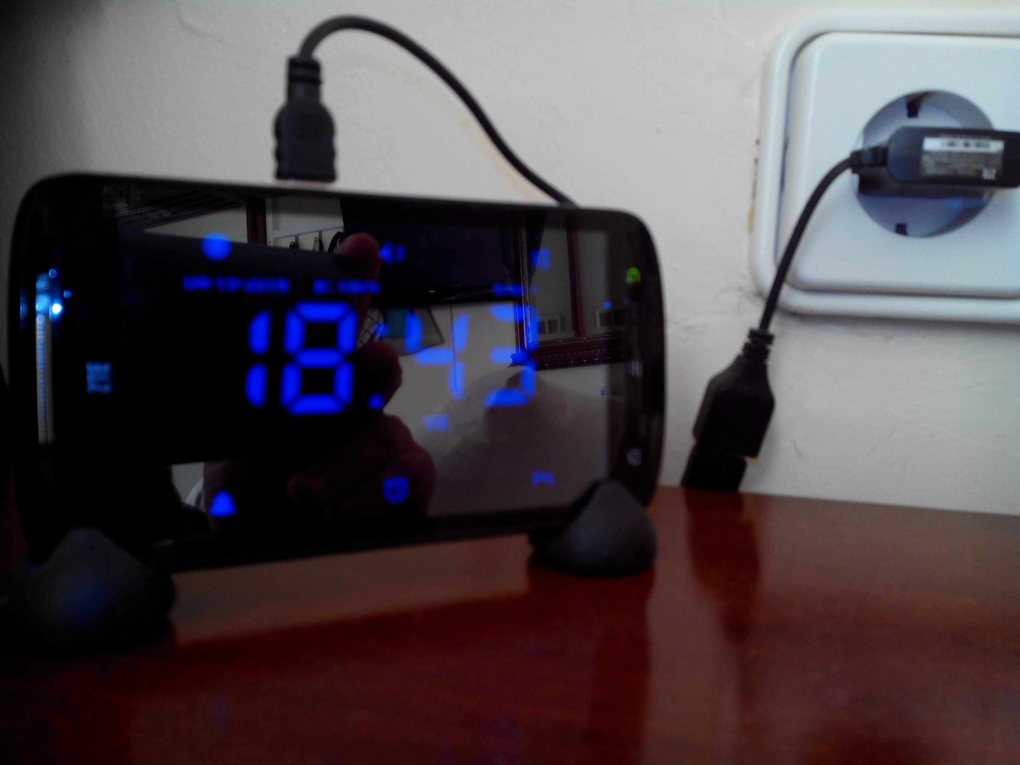 Es de destacar que en caso de que su terminal no soporte algunas de las dos magnificas app mencionadas aun así hay otras opciones como por ejemplo Table Clock que visualiza un reloj con números grandes, totalmente con figurable en color tamaño y datos a mostrar en la pantalla.
