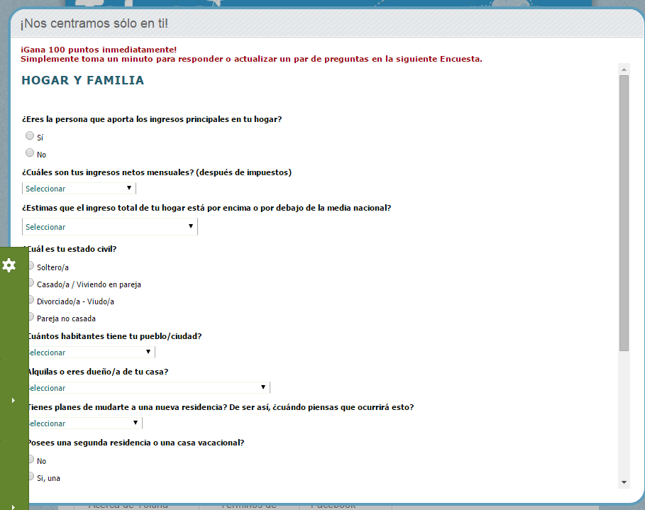 Se tienen que rellenar las encuestas que te envían sobre diversos temas. Dan una cantidad variable de puntos bonus por cuestionario. Los bonus se pueden canjear por dinero (10 bonus = 1€). Solo aceptan a miembros que hayan sido invitados por ellos.