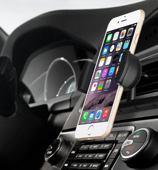 Una vez que haya instalado el sw de Android Auto  también necesitara un soporte  para poderlo ver cómodamente sin que le quite visibilidad en el parabrisas. En ests sentido están surgiendo nuevas propuestas ademas de los típicos sujetos con ventosas o en las rejillas de ventilación , por ejemplo este Soporte Móvil  ,  tiene una importante novedad : se  sujeta exclusivamente en la ranura del portacd’s  del  autoradio clasico de coche ( normalmente y a en desuso puesto que podemos oor muestros temas favoritos  a traves del bluettoth conectado a nuestro smartohone mediante A2DP)  de modo que este nuevo diseño e s fácil de instalar y utilizar, por lo que no tiene que preocuparse por la ventosa se suelte en el salpicadero o el parabrisas, así que  la instalación no dañara  su vehículo al no llevar  ventosas, pinzas, tornillos, pegamento y etc.pues se asegura fácilmente a la parte inferior y los lados de su dispositivo con dos asideros laterales acolchados.