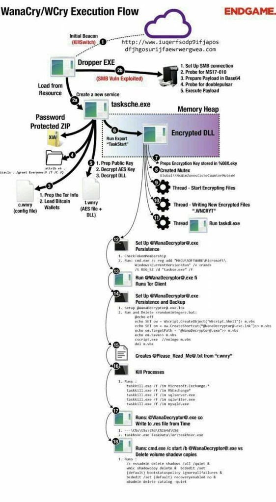 Quizás lo que lo ha hecho diferente este virus  es que a pesar de que sigue el mecanismo clásico de infección   (via spam masivo a direcciones de correo electrónico con un enlace de descarga del dropper para el payload), una vez se cuela en el equipo anfitrión , no solo cifra  todos los archivos a los que tenga acceso  ,sino que aprovechando la conectividad de red  y la vulnerabilidad mencionada , se intenta  transmitir por todo los equipos  de  una forma  muy rápida,  razón por  la que muchas empresas ,una que lo detectaron, en alguno de sus equipos , decidieron apagar toda  su infraestructura hasta analizar  uno por uno sus equipos ,