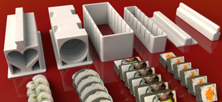 Preparar sushi es bastante fácil hasta que uno se pone a montar los makis, entonces enrollar el alga rellena de arroz se convierte en una odisea que sólo la práctica o un kit para preparar sushi pueden solucionar. Puede descargarlo aquí y empezar a preparar sushi mucho más rápidamente gracias a tu impresora 3D.