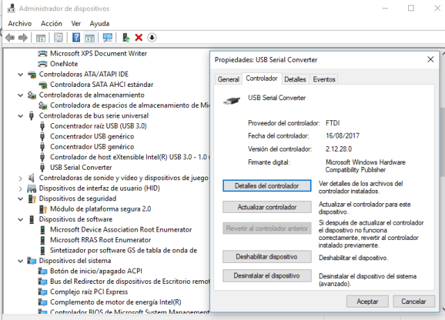 Esta version por cierto incluye la siguiente versión del sistema operativo Windows: Windows 7, Windows Server 2008 R2 y Windows 8, 8.1, Windows server 2012 R2, Windows Server 2016 y por suspuesto la mas reciente de Windows 10. Además, como Windows 8 RT es un sistema cerrado que no permite Instalación de controladores de terceros Nuestro controlador de Windows 8 no admitirá esta variante del sistema operativo. Debe usar la compilación de Windows RT para esta plataforma. También incluye las siguientes versiones de los sistemas operativos basados ​​en Windows CE 4.2-5.2: Windows Mobile 2003, Windows Mobile 2003 SE, Windows Mobile 5, Windows Mobile 6, Windows Mobile 6.1, Windows Mobile 6.5 Ya no es compatible  al 100% con   Windows XP, Vista, Server 2003, Server 20082012-04-13   , Windows 98 / ME25-11-2004 , Windows 98 / ME2004-03-12 ,etc   aunque exite  Certificado WHQL y También disponible como ejecutable de configuración  (esta es la versión final de FTDI antes de que Microsoft dejara de certificar los controladores para estas versiones de Windows). Mas información en https://www.ftdichip.com/Drivers/VCP.htm