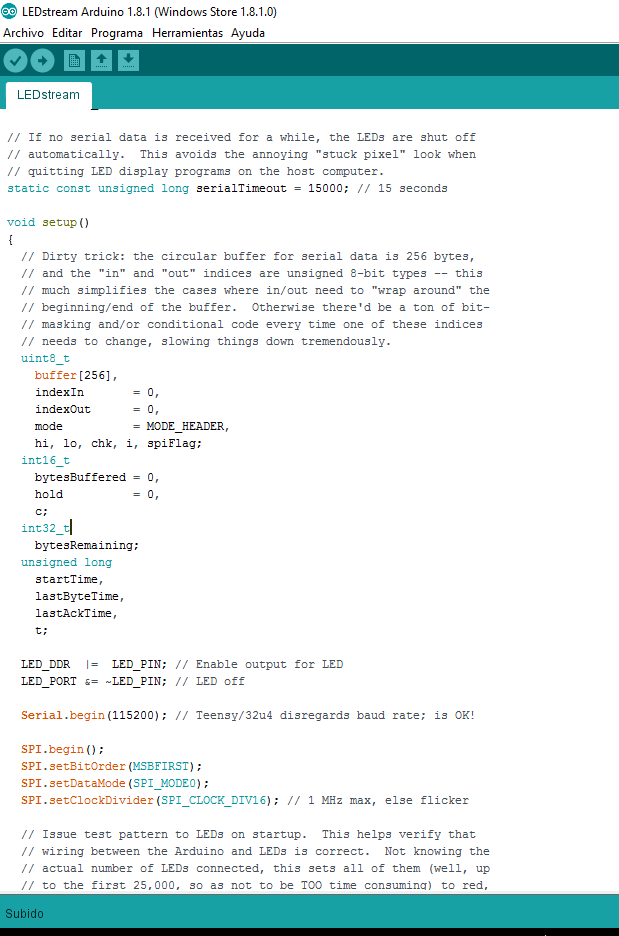 Obviamente este proceso tendrá que repetirlo hasta que el test de leds ejecutado desde el sketch de ledstream haga que se enciendan completamente todos los ledss de un color en las tres secuencias.