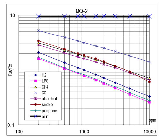 | MQ-2 | Metano, butano, GLP, humo | 5V |