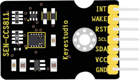 - Un sensor CCS811: Constituye el elemento más importante de este proyecto. Este sensor de calidad del aire de dióxido de carbono está fabricado por múltiples empresas como Keyestudio, AMS, Adafruit, etc. utilizando principalmente el chip CCS811. Este sensor de gas digital en miniatura de potencia ultrabaja, es de “bajo coste” y puede detectar una amplia gama de compuestos orgánicos volátiles (TVOC), incluidos niveles equivalentes de dióxido de carbono (eCO2) y óxido metálico (MOX). Incluye un conversor ADC interno, un procesador interno para realizar los cálculos y comunicación a través de a través de bus I2C por lo que es muy sencillo conectarlo a un microcontrolador.
