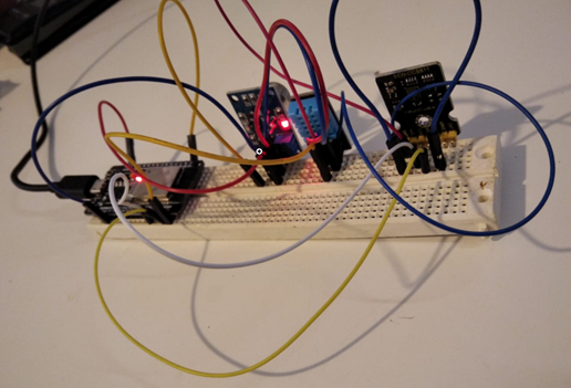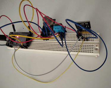 - Un sensor DHT11: El DHT11 puede medir temperaturas entre 0 a 50, con una precisión de 2ºC, humedad entre 20 a 80%, con precisión del 5% y con una a frecuencia de muestreo de 1 muestras por segundo (1 Hz) usando un interfaz de un hilo para comunicarse con el microcontrolador
