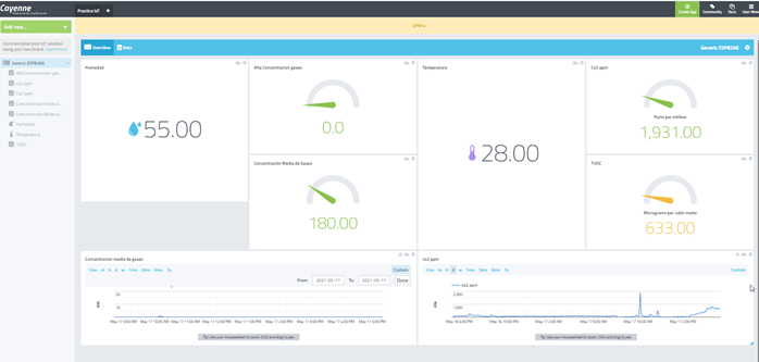 Gracias pues a esta veterana plataforma de Cayenne, es bastante sencillo monitorizar cualquier variable física de un modo realmente bastante sencillo simplemente haciendo casi un “drug &drop” desde el panel de control de Cayenne como vamos a ver en este trabajo donde vamos a presentar un complejo monitor de calidad de inalámbrico y de bajo coste gracias la potencia del software de esta plataforma y por supuesto la electrónica que lo hace posible.