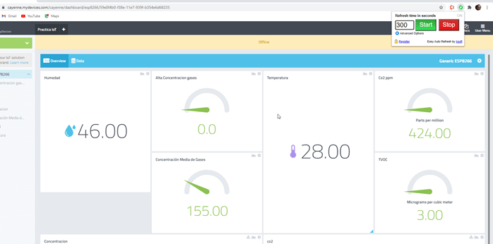 Este dato puede ser una trivialidad, pero pues ser claramente útil, porque en caso de una lectura anómala o incluso ante un posible fallo del sensor de nivel de aire, podemos usar este valor como referencia para que se dispare una alarma desde Cayenne.