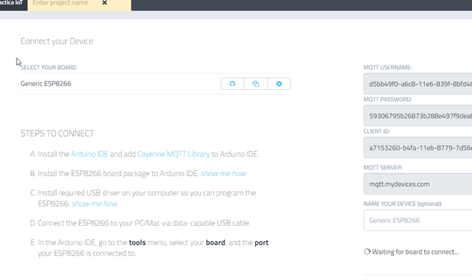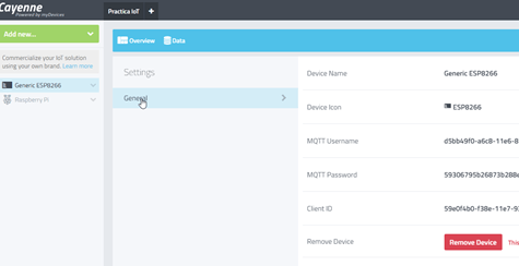Configurar dispositivo en Cayenne myDevices