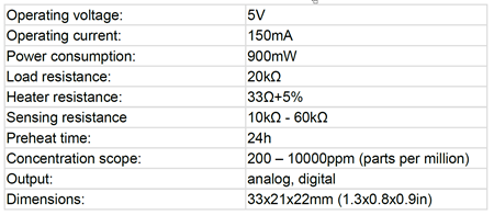 | MQ-8 | Hidrógeno | 5V |