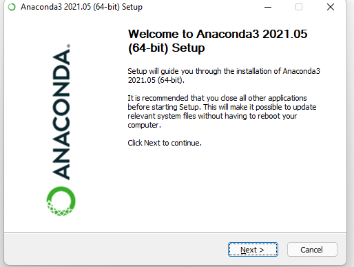 Después de una instalación exitosa, verá el cuadro de diálogo “Gracias por instalar Anaconda”: