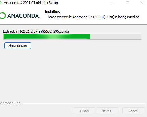 Haga clic en el botón Instalar. Si desea ver los paquetes que está instalando Anaconda, haga clic en Mostrar detalle