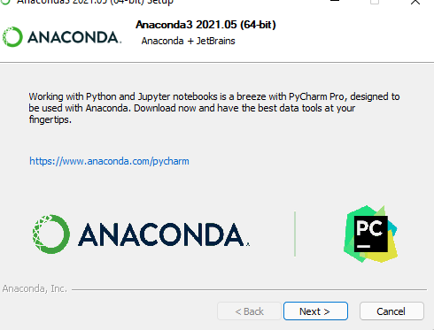 O para instalar Anaconda sin PyCharm, haga clic en el botón Siguiente.