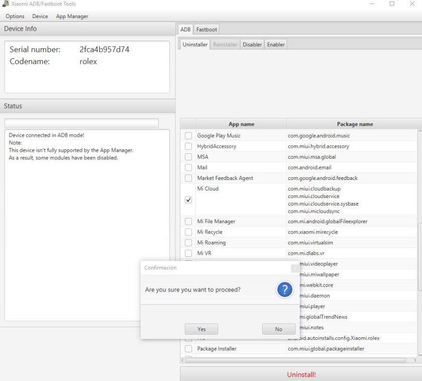 Usar herramientas a medida para eliminar aplicaciones en su Xiaomi
