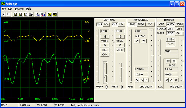Es importante destacar que se puede detener el momento de la visualización de forma de onda,permitiendo congelar en cualquier forma de onda de tiempo (Función HOLD)