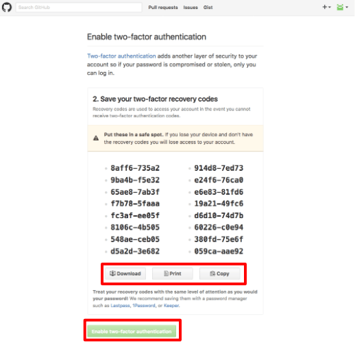 Por motivos de seguridad, los soportes técnicos de GitHub o del sitio que exijan 2FA no deberían poder restaurar el acceso a las cuenta que tengan habilitada la autenticación en dos fases si pierde sus credenciales de autenticación en dos fases o el acceso a los métodos de recuperación de su cuenta. .