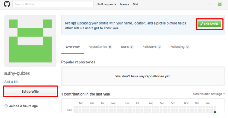 Ahora acceda a su cuenta de GitHub abre el menú desde el icono superior derecho que muestra la imagen de tu cuenta. Seleccione «Tu perfil»
