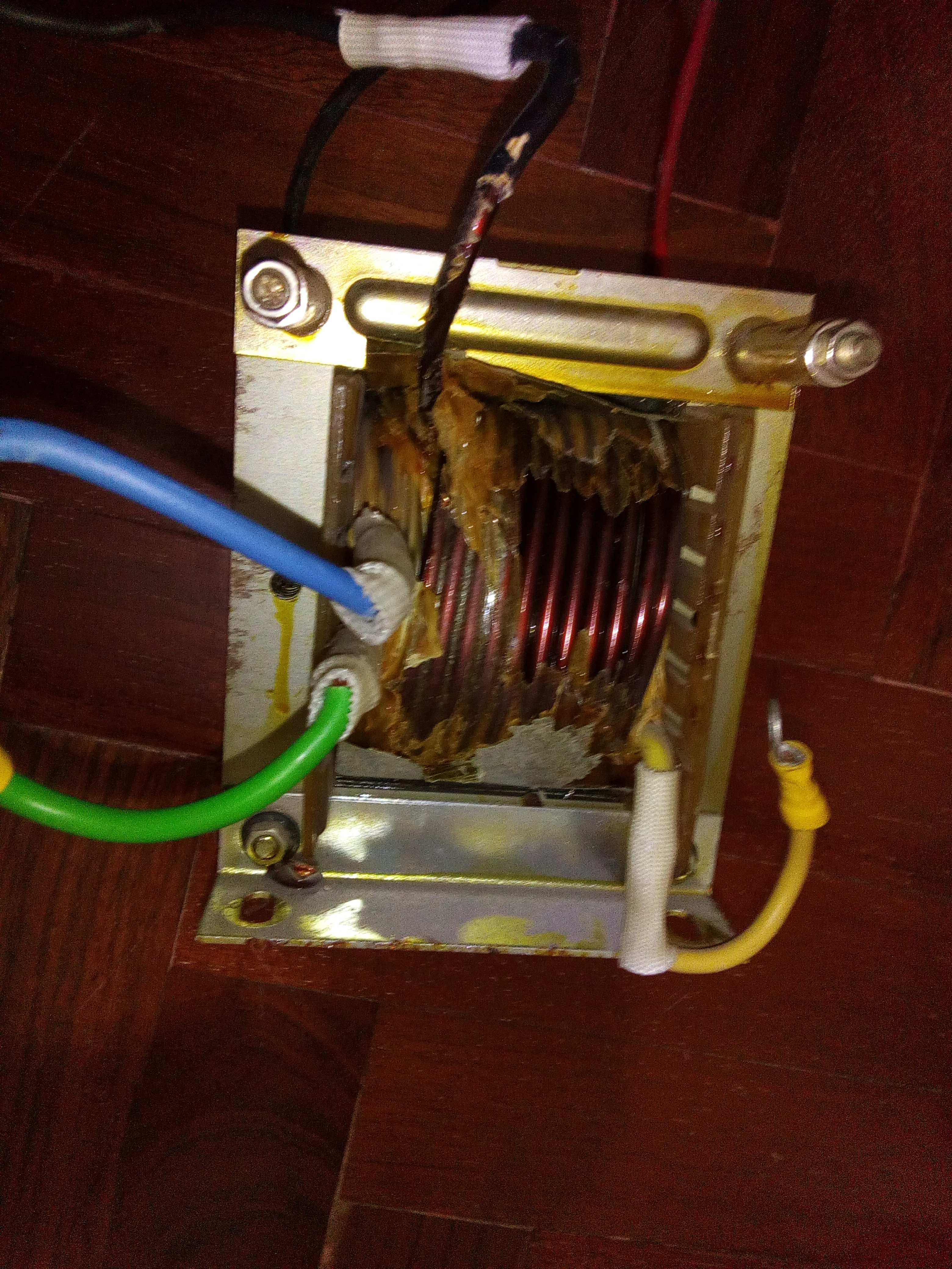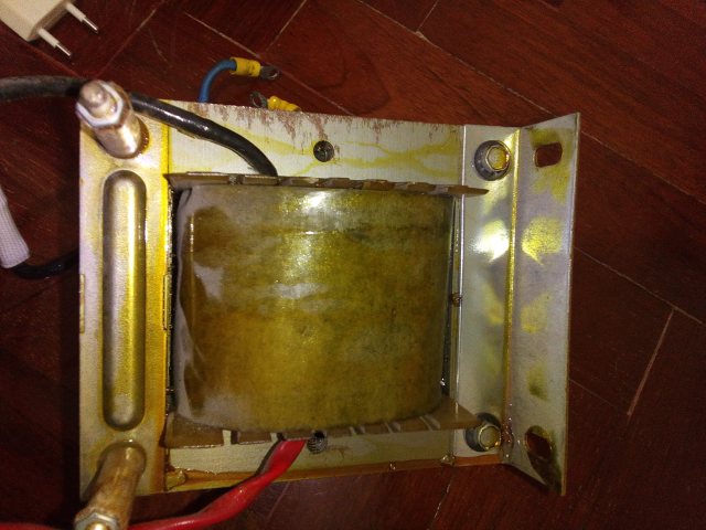 El transformador con toma central eleva la tensión de los 12 V DC de la batería hasta unos 230 V AC en la salida.