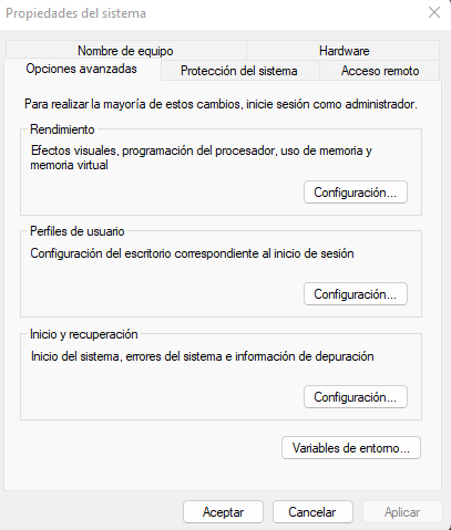 - Propiedades del sistema operativo Windows