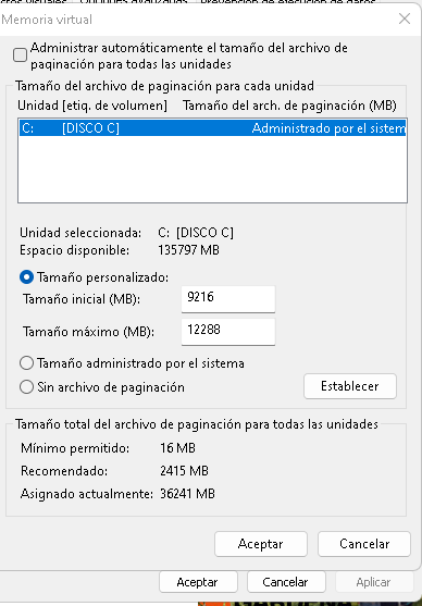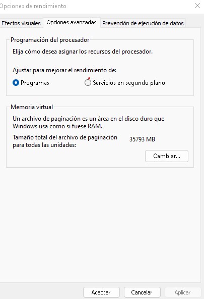 - Tamaño de la memoria y utilización del almacenamiento